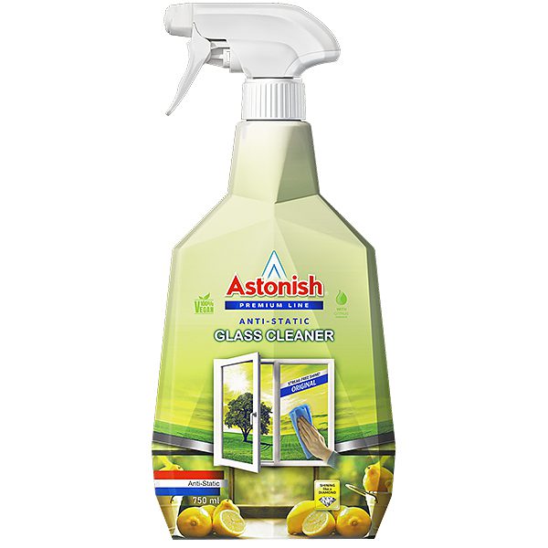 شیشه پاک کن آنتی استاتیک آستونیش ، یک شیشه پاک کن حرفه ای برای تمام سطوح براق با خاصیت براق کنندگی و آنتی استاتیک میباشد که سریع خشک شده، هیچ ردی بجا نگذاشته و قدرت پاک کنندگی بالایی دارد.ویژگی های محصول شامل تولید لایه آنتی استاتیک روی سطوح، براق و درخشان کننده سطوح صاف و سیقلی، خشک شدن سریع، بدون اثر لک و رگه بر روی شیشه و قدرت پاک کنندگی بالا برای چربی، کثیفی و اثر انگشت می باشد.