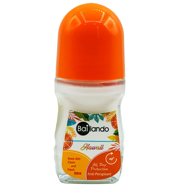مام رول ضد تعریق بایلندو مدل هاوایی Hawaii حجم 50 میلی لیتر یک رول ضد تعریق برای کاهش تعریق و جلوگیری از بوی بد ناشی از آن می باشد. این رول ضد تعریق دارای رایحه گرم وشیرین و بسیار خوشبو است.