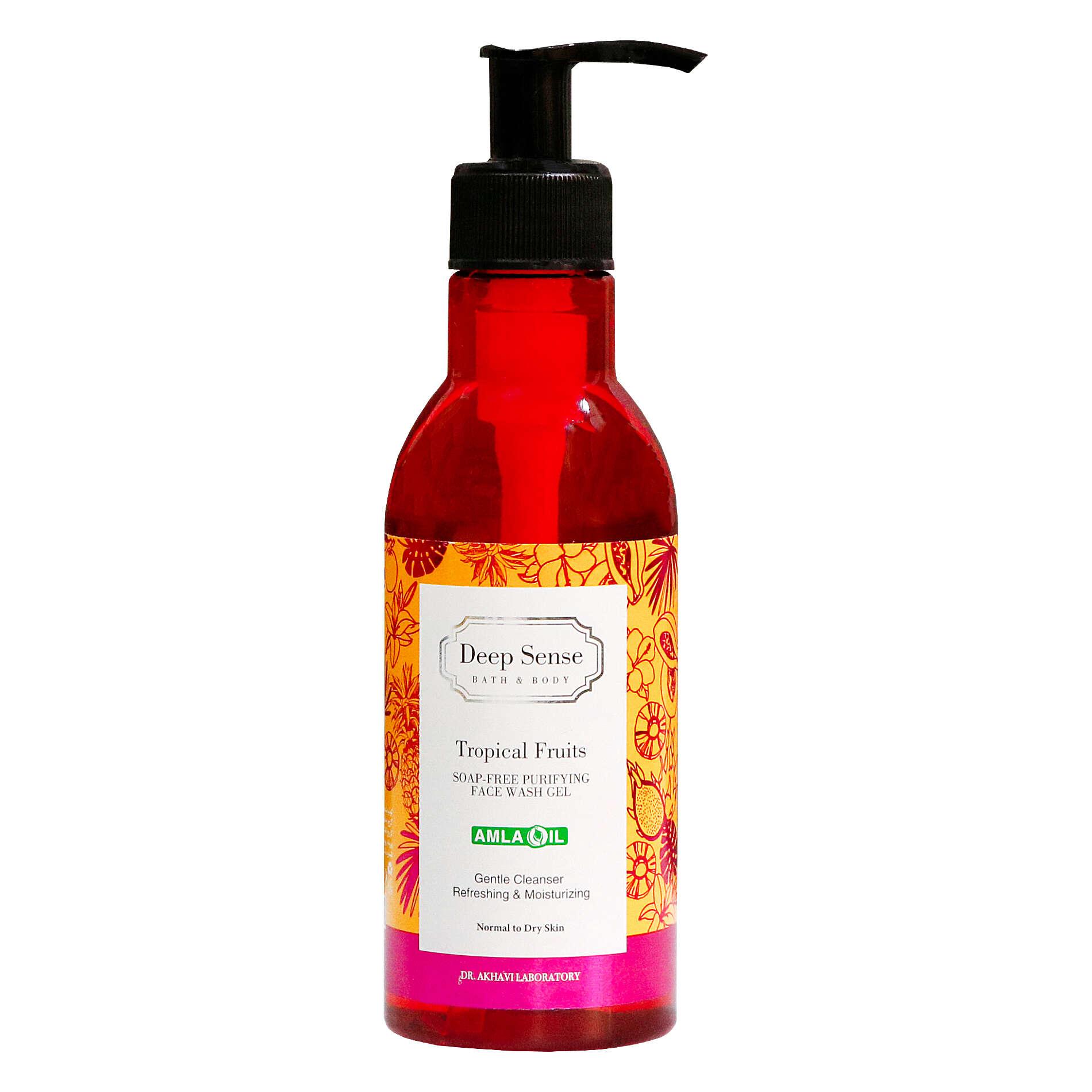 ژل شستشوی صورت با رایحه میوهای دیپ سنس، یک شوینده ملایم برای افرادی است که دارای پوست خشک و معمولی هستند. این محصول ضمن پاکسازی عمیق پوست از آلودگیها و محصولات آرایشی به دلیل داشتن هیالورونیکاسید و روغن آملا، دانه کتان، میوههای استوایی و ویتامین E در ترکیبات خود به رطوبت رسانی پوست نیز کمک میکند.